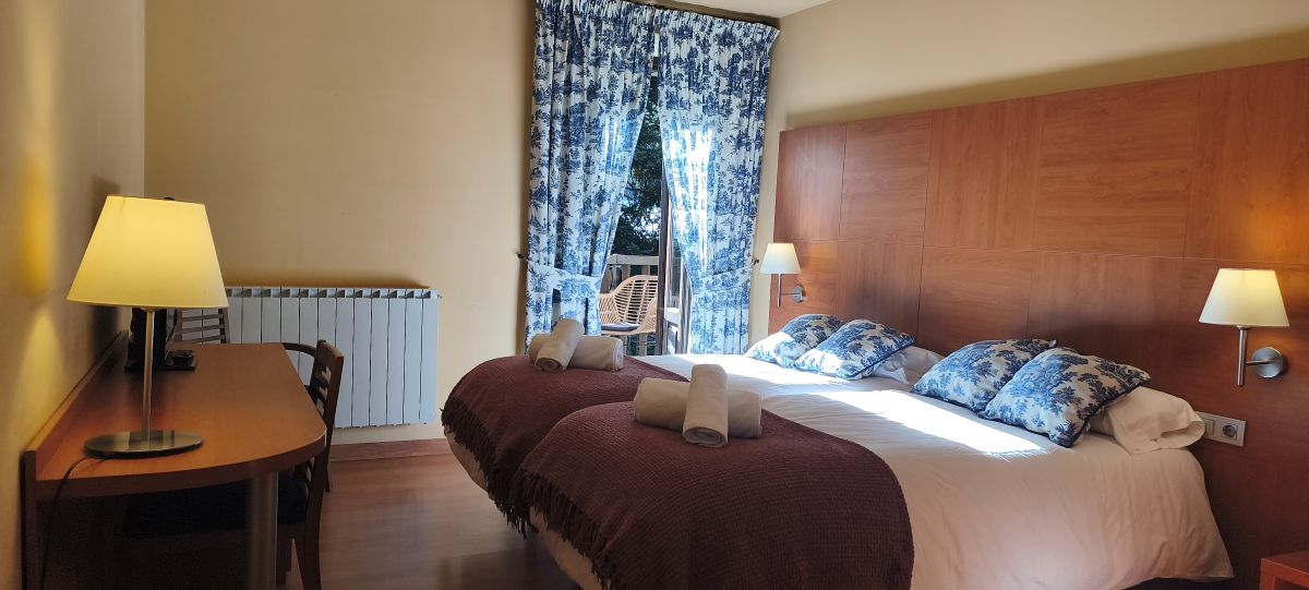 Double room with two single beds in a space of 23 m2. All of them feature a balcony with a beautiful view of the mountains and / or the garden.
